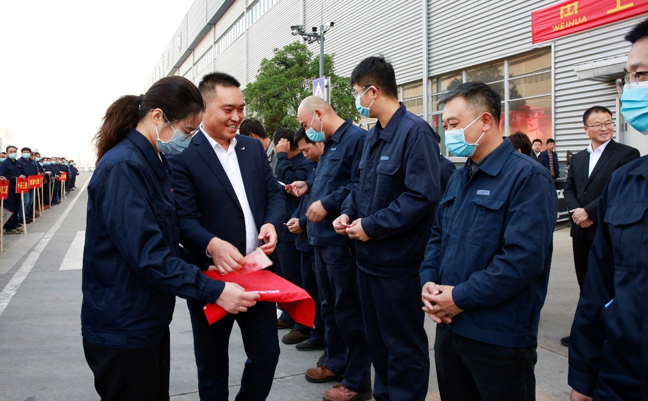 崔鹏和谢保华分别为质量先进班组和个人颁发奖金及荣誉证书